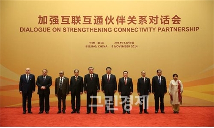 그리고 11월 8일, 몽골·라오스·캄보디아·미얀마·방글라데시·파키스탄·타지키스탄 등 APEC 비회원 국가 정상들을 초청해 개최한 ‘소통과 동반자관계 강화를 위한 대화 회의’에서, 시진핑 주석은 의장 자격으로 참석해, 중국이 단독 출자하는 400억 달러(한화 약 43조7400억 원)의 ‘실크로드 기금’ 창설을 제창했다.