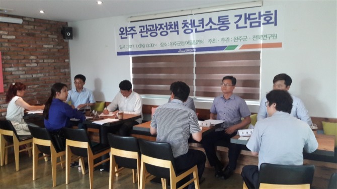 [글로벌이코노믹 김도윤 기자] 전북 완주군이 청년들의 의견을 관광정책에 반영하기 위해 청년들을 만났다.