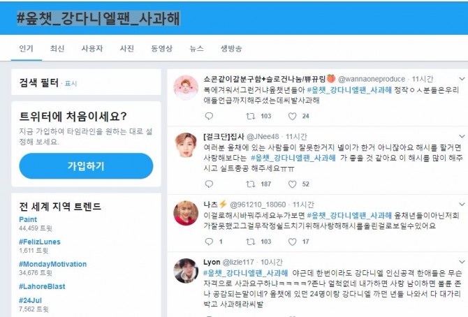 해당 내용을 접한 방탄소년단과 엑소 팬들은 ‘#옾챗_강다니엘팬_사과해’ 트위터 계정을 만들어 관련자들의 사과를 촉구하고 있다. 자신의 스타를 좋아하는 것을 넘어 다른 아이돌 그룹과 비교하는 행태가 적절치 못하다는 지적이 이어지고 있다.