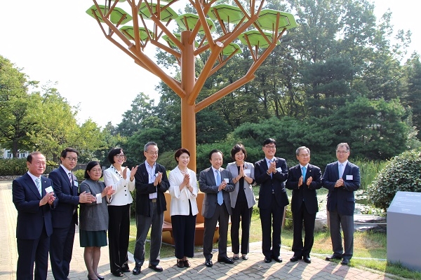 이미지 확대보기한화큐셀코리아가 31일 국회 기후변화포럼 창립 10주년을 기념해 솔라트리(Solar Tree) 기증 제막식을 가졌다. 국회 기후변화포럼은 기후 변화 대응 입법·정책 관련 활동을 하는 포럼이다.