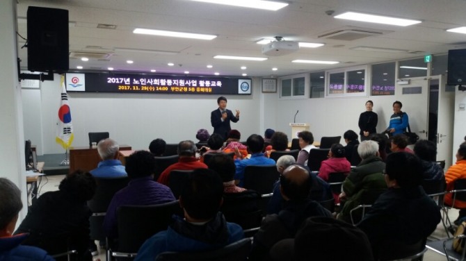 부안종합사회복지관 이춘섭 관장의 노인여가생활교육, 정몽우 강사의 건강개선교육, 부안정신복지증진센터의 자살예방교육 등으로 이뤄졌다. 활동교육에 참여한 김모씨는 “교육을 통해 지금의 나이에도 즐거움을 찾을 수 있었으며 좀 더 건강하게 살 수 있겠다”고 말했다.