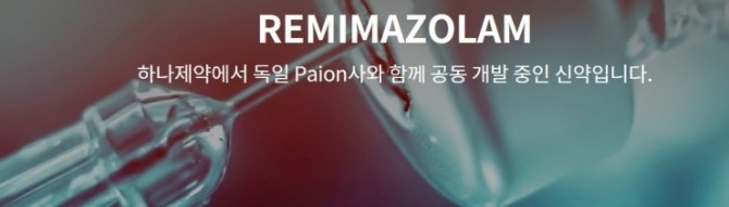 하나제약은 "프로포폴과 미다졸람의 장점을 가져온 차세대 마취 신약"이라며 "레미마졸람은 신속한 회복시간과 역전제(회복제) 특징을 지녔다"고 설명했다.