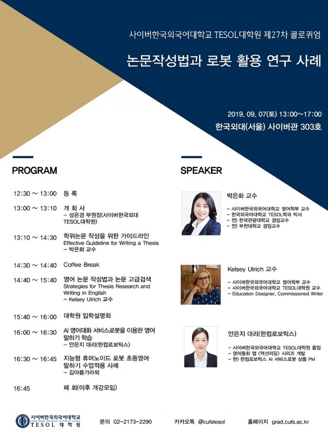 사이버한국외대 TESOL대학원, ‘논문작성법과 로봇 활용 연구 사례’ 주제 콜로퀴엄 개최