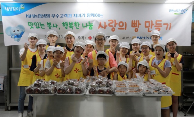 NH농협생명이 13일 서울 거주 우수고객과 자녀 20여명을 초청, 대한적십자사 서울지사에서 ‘사랑의 빵 만들기’ 행사를 가졌다고 15일 밝혔다.