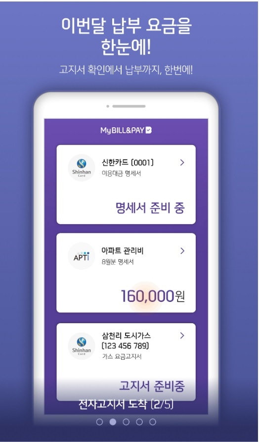 신한카드가 각종 청구서를 한 눈에 확인하고 자동이체까지 신청할 수 있는 원스톱 전자금융서비스인 ‘마이빌앤페이(My BILL&PAY)’를 출시했다고 21일 밝혔다. (사진=신한카드)