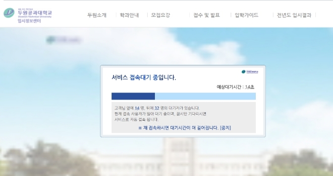 두원공과대학교, 합격자 발표로 홈페이지 접속 지연