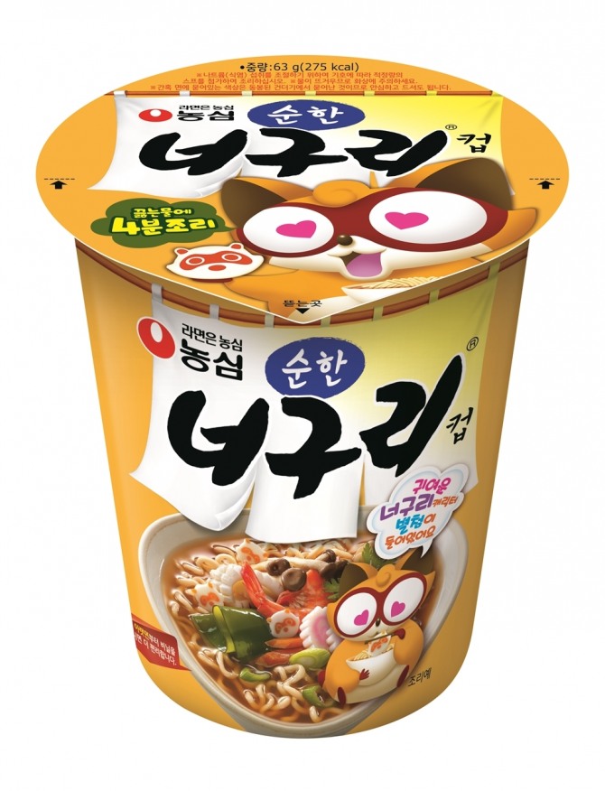 농심은 순하고 담백한 국물을 더 선호하는 소비자들을 위해 순한너구리컵을 내놓았다.