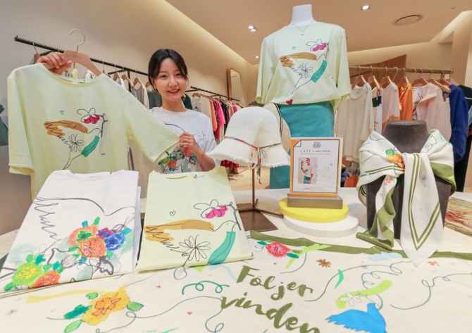 새 제품은 초록우산 재단 어린이들의 그림을 한섬 스타일로 위트있게 재해석한 게 특징이다.