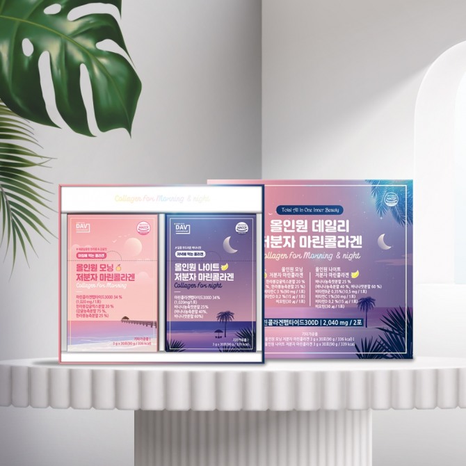 올인원 데일리 저분자 마린 콜라겐은 아침과 저녁에 섭취할 수 있도록 모닝 콜라겐과 나이트 콜라겐 2종으로 구성됐다.