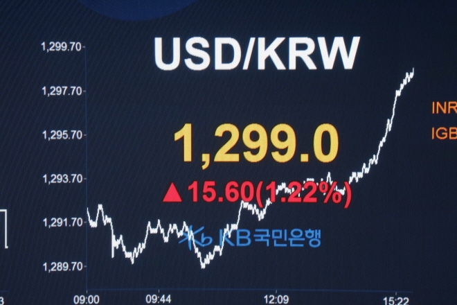 29일 원·달러 환율, 1299.0원 마감···전일比 15.6원↑