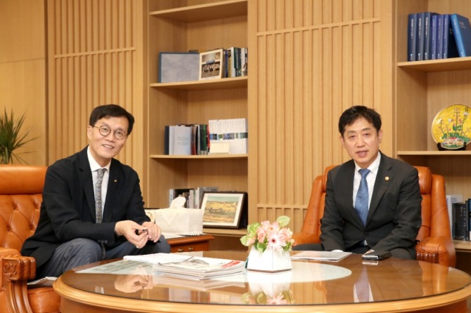 이창용 한국은행 총재가 김주현 금융위원장과 양 기관의 공조강화를 위해 첫 회동을 가졌다. [사진=한국은행]