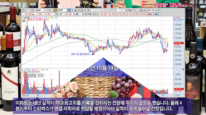 이마트는 내년 실적이 역대 최고치를 기록할 것이라는 전망에 주가가 급상승 했습니다. 올해 4분기부터 스타벅스가 연결 자회사로 편입될 예정이어서 실적이 크게 늘어날 전망입니다.
