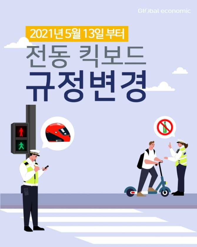 공유형 전동 킥보드나 개인형 이동 장치를 이용하시는 분이라면 다가오는 5월 13일에 강화되는 [도로교통법]을 숙지하시어 안전한 주행 하시길 바랍니다.