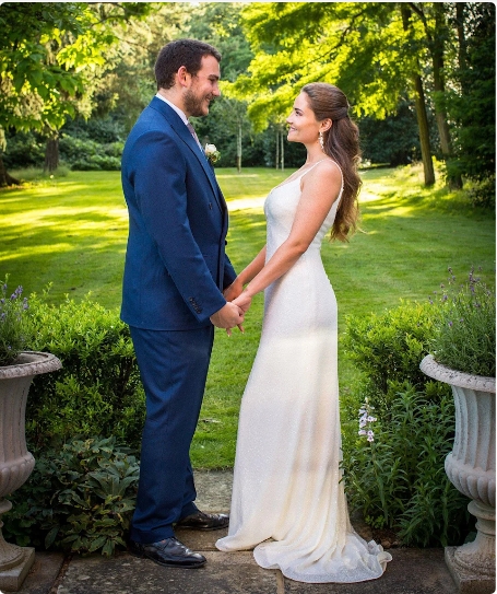 사진 속 23세의 신랑 재거는 결혼식을 위해 네이비 수트를 입었고 미색 부토니에와 연한 핑크색 넥타이를 매치했다.