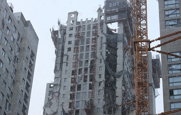 이날 강풍이 분 가운데 타워크레인 지지대과 거푸집 등이 풍압을 견디지 못했거나 하부에 타설해놓은 콘크리트의 강도가 충분하지 않았을 가능성도 있다.