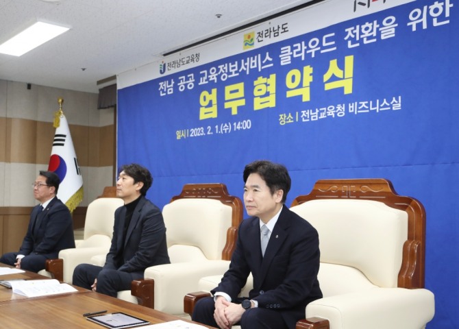 이미지 확대보기전남교육청은 전국 최초로 공공분야 교육정보서비스의 민간 클라우드 전환을 추진함으로써 디지털 대전환을 위한 전남형 클라우드 기반 인프라 구축 협력체계를 마련했다.