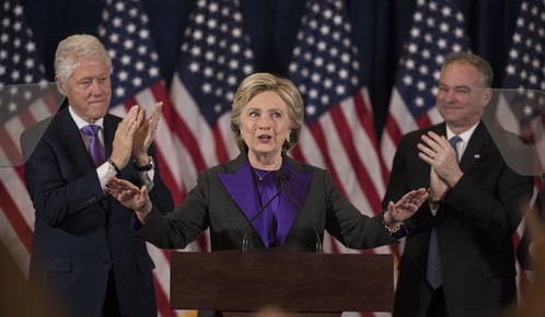 미국 민주당 대선 후보 힐러리 클린턴이 9일(현지시간) 뉴욕에서 패배 연설을 하고 있다 / 사진=AP 뉴시스