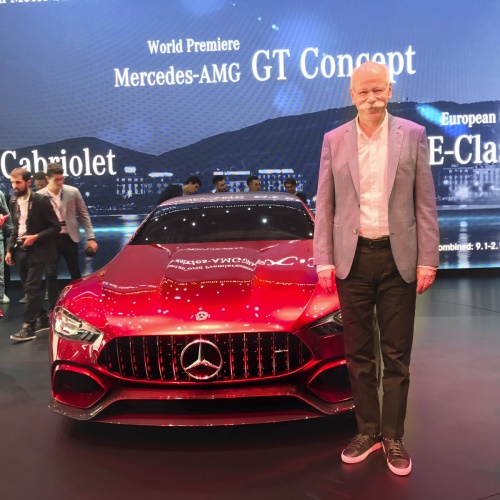 메르세데스-벤츠 디터 제체(Dieter Zetsche) 회장는 벤츠 차량을 배경으로 포즈를 취하고 있다. 출처=다임러 트위터