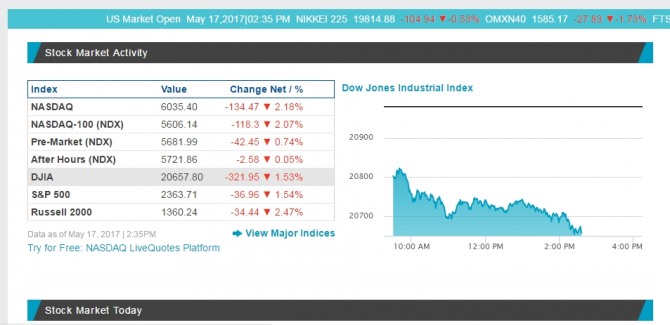 재벌 저격수 김상조 공정거래위원장 지명으로 코스피 코스닥이 요동치고 있는 가운데 미국에서는 트럼프 쇼크로 다우지수와 나스닥 지수 등이 큰 폭으로 떨어졌다.     이미지 확대보기