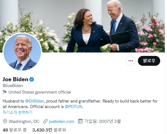 이미지 확대보기조 바이든 미국 대통령의 트위터 팔로워 가운데 절반 정도가 가짜 계정인 것으로 나타났다고 시사주간지 뉴스위크 온라인판이 17일(현지시간) 보도했다.