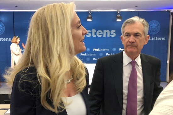 제롬 파월 연방준비제도(Fed) 의장이 라엘 브레이너드 부의장과 이야기하고 있다. 사진=로이터