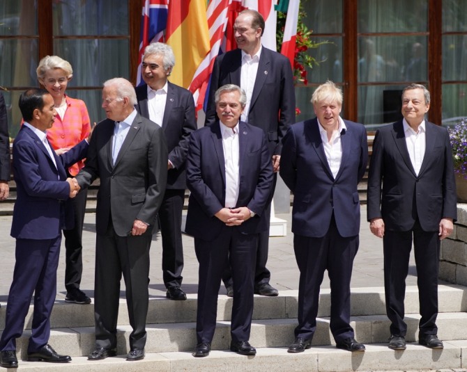 G7 정상들은 러시아가 우크라이나 침공을 계속하는데 필요한 전비를 에너지 수출 대금으로 조달하고 있어 러시아의 수입원을 최대한 제한해야 한다는 데 의견 접근을 보았다고 외신이 전했다.