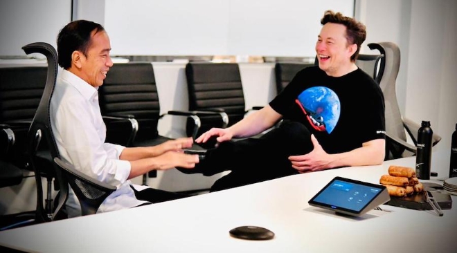 조코 위도도 인도네시아 대통령이 지난 5월 일론 머스크 테슬라 CEO를 만나 전기차 사업에 대해 논의했다. 사진=인도네시아 대통령궁