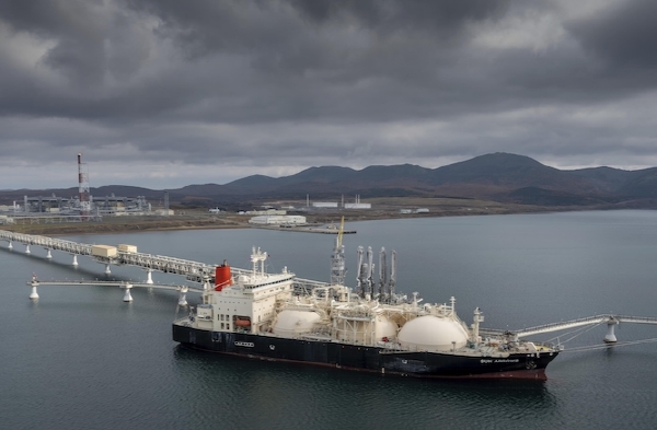 사할린2에서 액화천연가스를 적재하는 LNG 유조선. 사진=AP/뉴시스