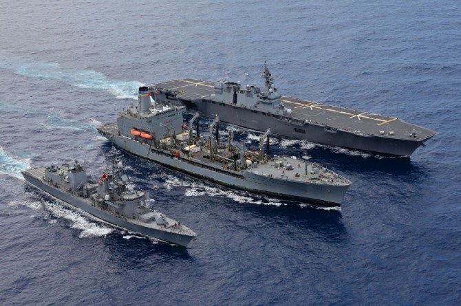 미군 구축함과 일본 해상자위함은 훈련을 통해 상호 운용성을 향상시키기 위해 원활한 협력이 가능하도록 공동 대처 방법을 확인하고 있다.