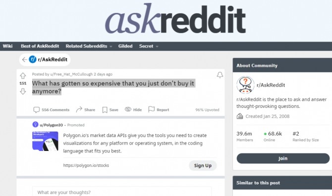 화제의 비공식 설문은 레딧의 ‘무엇이든 물어보세요’ 코너에서 ‘가격이 지나치게 올라 더 이상 돈을 쓰지 않는 대상이 있나요?’라는 질문으로 최근 진행됐다.