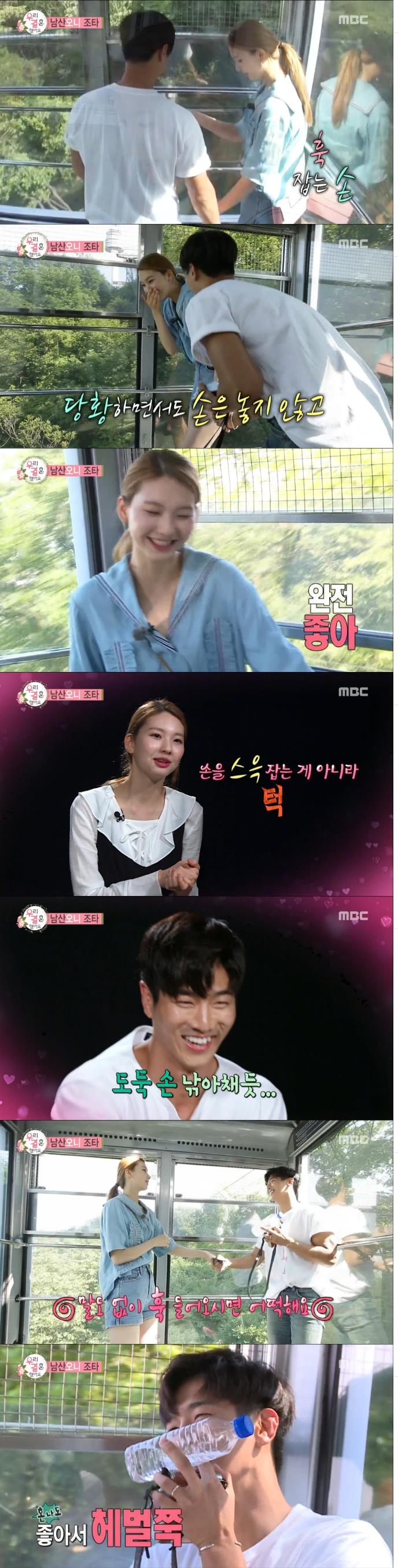 이미지 확대보기18일 방송된 MBC '우리 결혼했어요'에서 '남산 오니 조타' 편에서는 조타-김진경 커플이 드디어 처음으로 손을 잡는데 성공해 설렘 가득한 첫 스킨십을 가졌다.