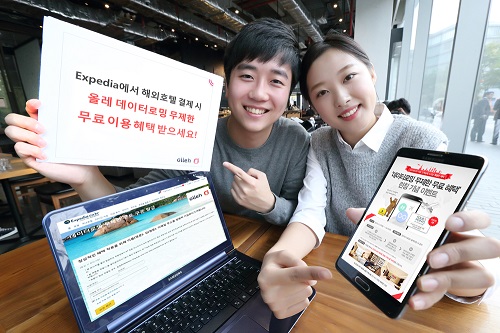 올레닷컴과 연계된 ‘KT 전용 익스피디아 사이트’를 통해 숙박비를 1박당 10만원 이상 예약·결제하면 1박당 ‘데이터로밍 무제한’ 서비스를 제공한다.