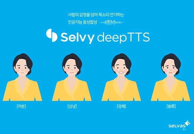 셀비 딥TTS는 딥러닝 기반으로 개발된 음성합성(DNN-TTS) 기술이다. 다양한 감정 표현이 가능한 감정합성 기술에 대한 자세한 데모는 셀바스 AI 공식 채널과 공식 포스트를 통해 확인할 수 있다.