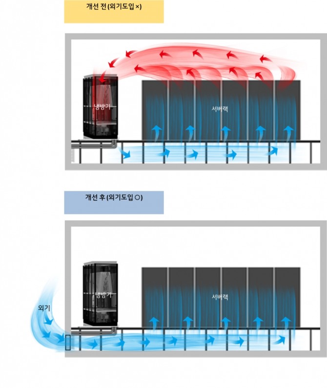 2019년부터는 외부기온이 낮은 겨울철에 바깥 공기를 전산실로 끌어들이는 외기 냉방 시스템을 도입하고 있다. 이전까지는 서버랙이 내뿜는 더운 공기를 실내 냉방기를 가동해 냉각했는데, 이젠 차가운 바깥 공기를 활용해 냉방기를 가동하지 않아도 된다.