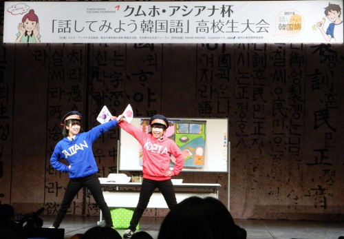 이미지 확대보기지난 2008년 첫 대회를 시작으로 올해 8회째를 맞는 이번 대회에는 지난해 12월부터 도쿄, 오사카, 후쿠오카, 구마모토 등 일본 각지에서 예선을 통과한 일본 고교생 32명이 참가했다. 이날 본선대회는 한국어 스피치, 한국어 촌극(2인 1조), 일본어 에세이 등 총 3개 부문으로 나뉘어 진행됐으며, 최우수상 4명, 우수상 4명, 특별상 8명, 지도교사상 1명 등 총 17명이 본상을 받았다.