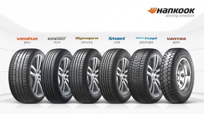 한국타이어가 운용 중인 브랜드는 △프리미엄 초고성능 브랜드 ‘벤투스’ △합리적 가격의 고성능 브랜드 ‘키너지’ △스포츠유틸리티차량(SUV) 전용 ‘다이나프로’ △겨울용 타이어 ‘윈터아이셉트’ △가격 대비 만족감이 높은 ‘스마트’ △경트럭 및 밴 전용 타이어 ‘벤트라’ 등 6개다.