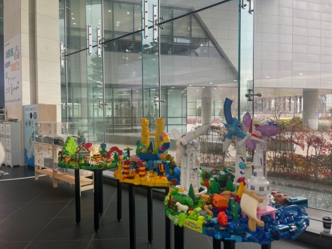 이미지 확대보기11일 동서발전 본사에서 새활용 연구소와 함께 ‘정크아트 전시회’를 열어 폐플라스틱 병뚜껑, 장난감 등 일상생활에서 나온 폐품을 소재로 친환경 에너지를 형상화한 예술 작품을 선보였다.