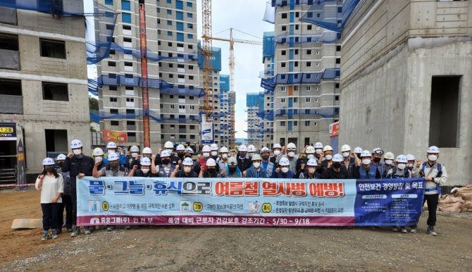 이미지 확대보기21일 중흥건설그룹은 여름철을 맞아 전국 공사 현장에서 '폭염 대비 근로자 건강보호 강조기간 선포식'을 가졌다고 밝혔다.