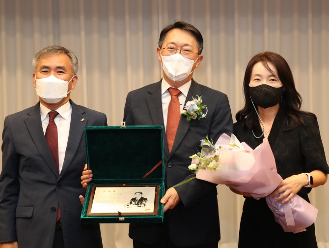 김현준 LH 사장(가운데)이 이정관 부사장·직원과 퇴임식 기념촬영을 하고 있다. 사진=LH이미지 확대보기