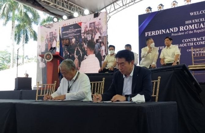 이미지 확대보기7일 롯데건설은 필리핀 교통부가 발주한 '필리핀 남부도시철도 7공구'를 수주했다고 밝혔다. 계약체결식은 지난 6일 페르디난드 마르코스 주니어 필리핀 대통령 등 주요 인사 참석 하에 진행됐다.