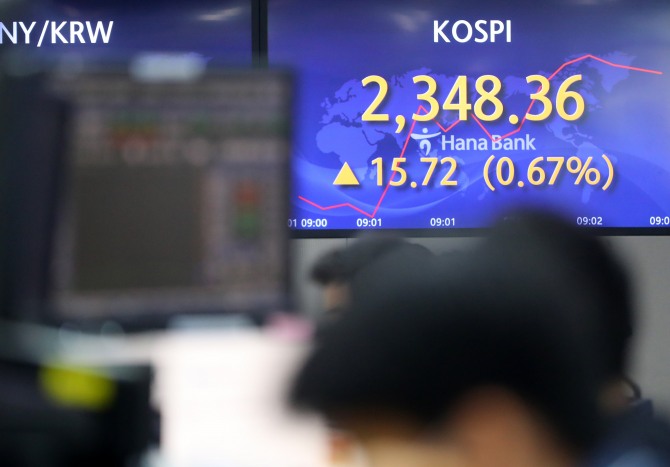1일 한국거래소에 따르면 오전 10시 45분 현재 코스피는 전 거래일 대비 0.56%(13.17포인트) 떨어진 2319.47을 기록하고 있다.