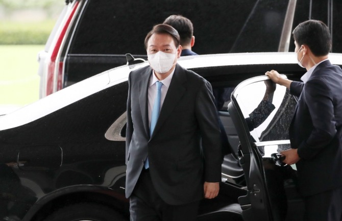 윤석열 대통령이 8일 서울 용산 대통령실 청사로 출근하고 있다. 사진=뉴시스