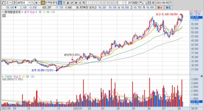 이미지 확대보기한국항공우주의 주가는 9일 오전 9시 15분 현재 전일보다 2100원(3.43%) 내린 5만9100원에 거래되고 있습니다.