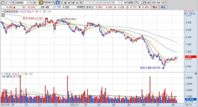 미래에셋증권의 지난 1년여간 주가 변동 추이. 자료=키움증권이미지 확대보기