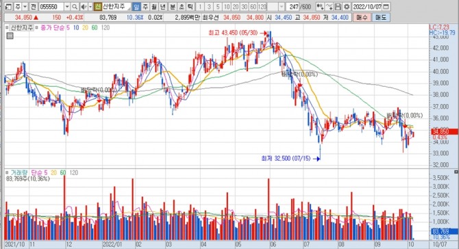 이미지 확대보기신한금융지주의 주가는 7일 오전 9시 5분 전일보다 150원(0.43%) 오른 3만4850원에 거래되고 있습니다.