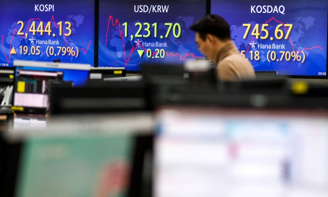 이미지 확대보기1일 한국거래소에 따르면 오전 11시 45분 현재 코스피는 전 거래일 대비 0.67%(16.14포인트) 오른 2441.22을 기록하고 있다.