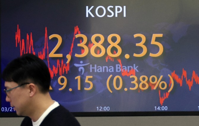 이미지 확대보기21일 한국거래소에 따르면 이날 코스피는 전거래일 대비 0.38%(9.15포인트) 오른 2388.35에 거래를 마감했다.