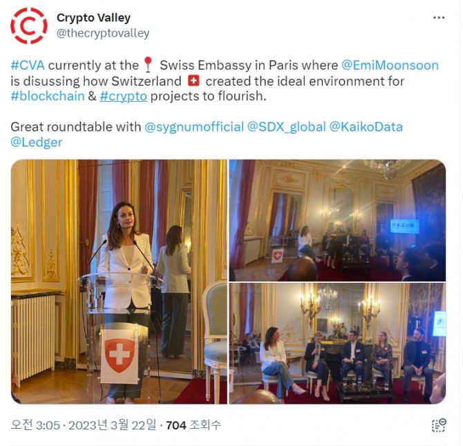 미국과 비유럽권 암호화폐 기업들이 실버게이트와 시그니처 은행 파산 직후 규제가 느슨하고 암호화폐 친화적인 스위스 은행에 러브콜을 보내고 있는 것으로 알려졌다. 사진=크립토밸리 트위터이미지 확대보기