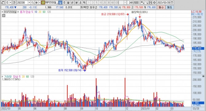 이미지 확대보기BGF리테일의 주가는 28일 오전 9시 10분 현재 전일보다 200원(0.11%) 내린 17만8400원에 매매되고 있습니다.