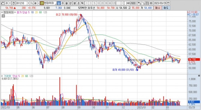 현대차증권은 현대위아의 올해 1분기 실적이 노조 격려금 지급에 따른 일시적 비용 사유로 당초 기대보다 하향 조정될 것으로 보이나 기계 부문의 손익이 회복될 것으로 전망해 현대위아에 대해 투자의견 매수와 목표주가 8만원을 그대로 유지했습니다.
